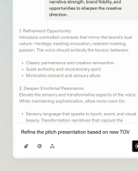Generate sales presentations that maintain brand sophistication while addressing customer-specific needs and business goals.