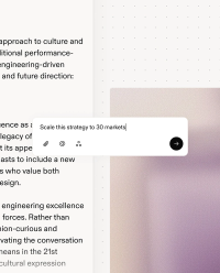 Create images, headlines, presentations, even press releases. Choose your audience, then get on-brand assets based on your visual language and tone of voice.