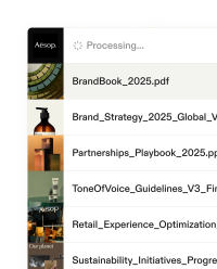 Maintain and evolve brand guidelines across modules with AI assistance to keep guidelines current, not frozen in PDFs.