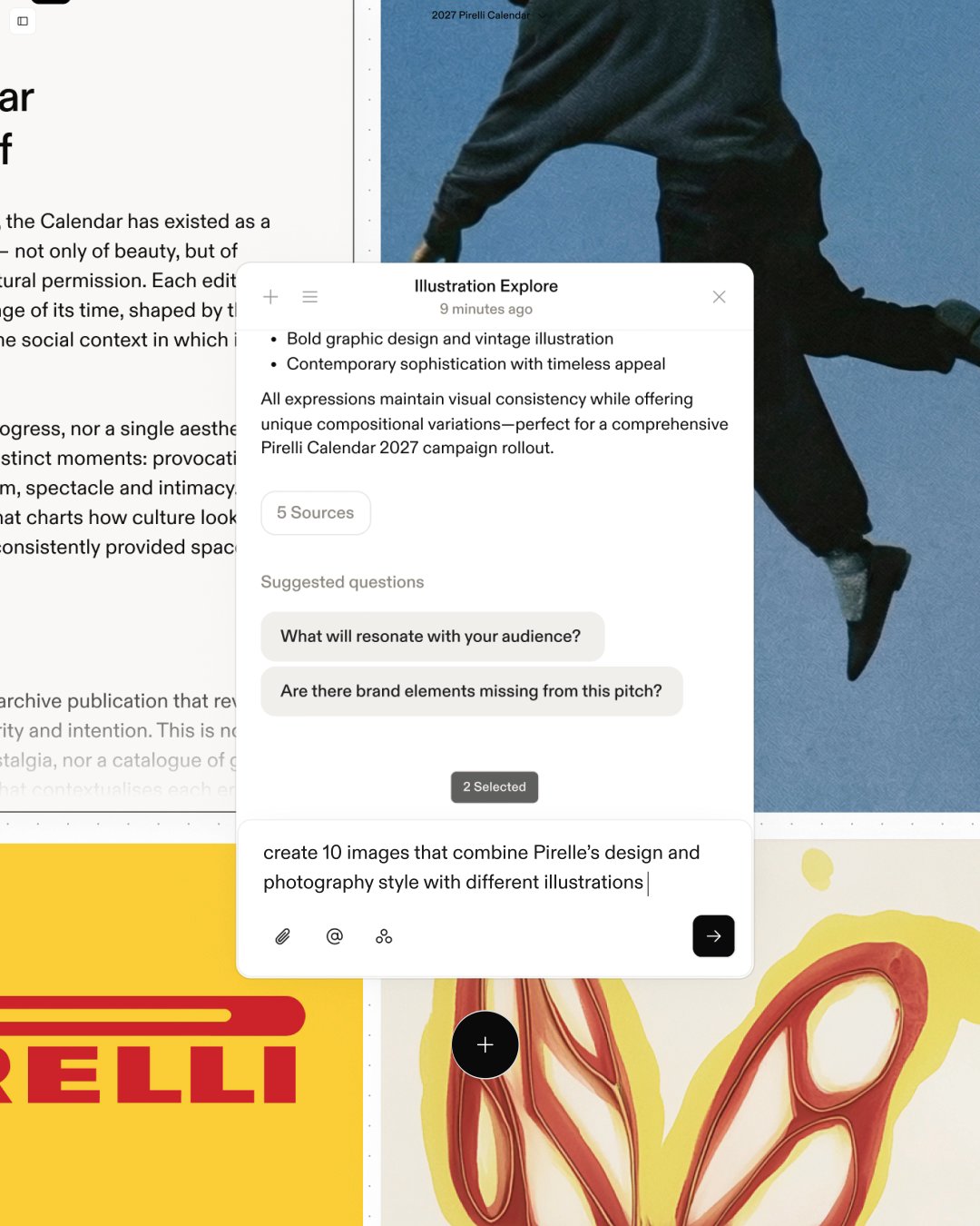 Reference campaigns, attach briefs, even connect projects. Assistant knows your brand and your current workstreams.