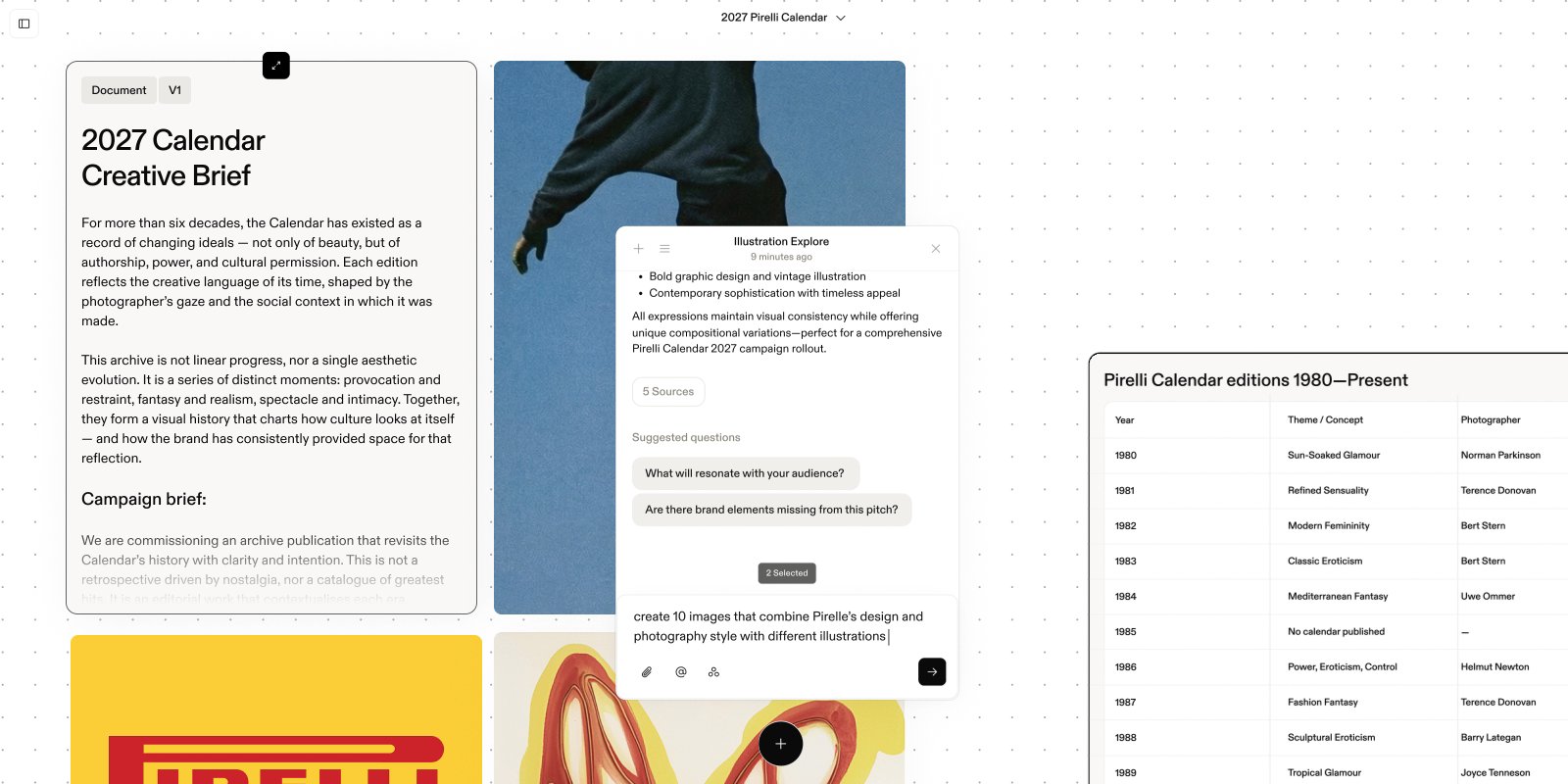 Build moodboards, connect ideas, and plan campaigns on an infinite workspace. All of Assistant's power, but freeform and visual. Export to decks, spreadsheets, or images.
